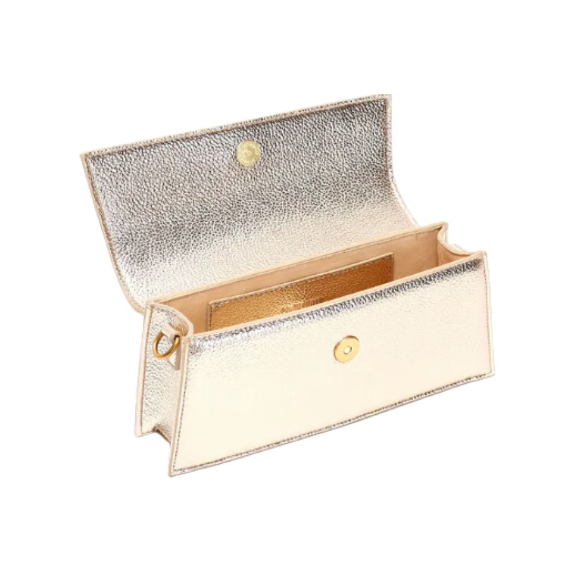 A Bolsa Metalizada Light é um verdadeiro símbolo de versatilidade e sofisticação. Com uma alça removível, permite a flexibilidade de ser utilizada confortavelmente no ombro ou elegantemente na mão. Seu tom suave de ouro é um convite à elegância, destacando-se em cada detalhe. Seu brilho sutil e refinado acrescenta um toque de glamour a qualquer visual, elevando-o de forma discreta e elegante.