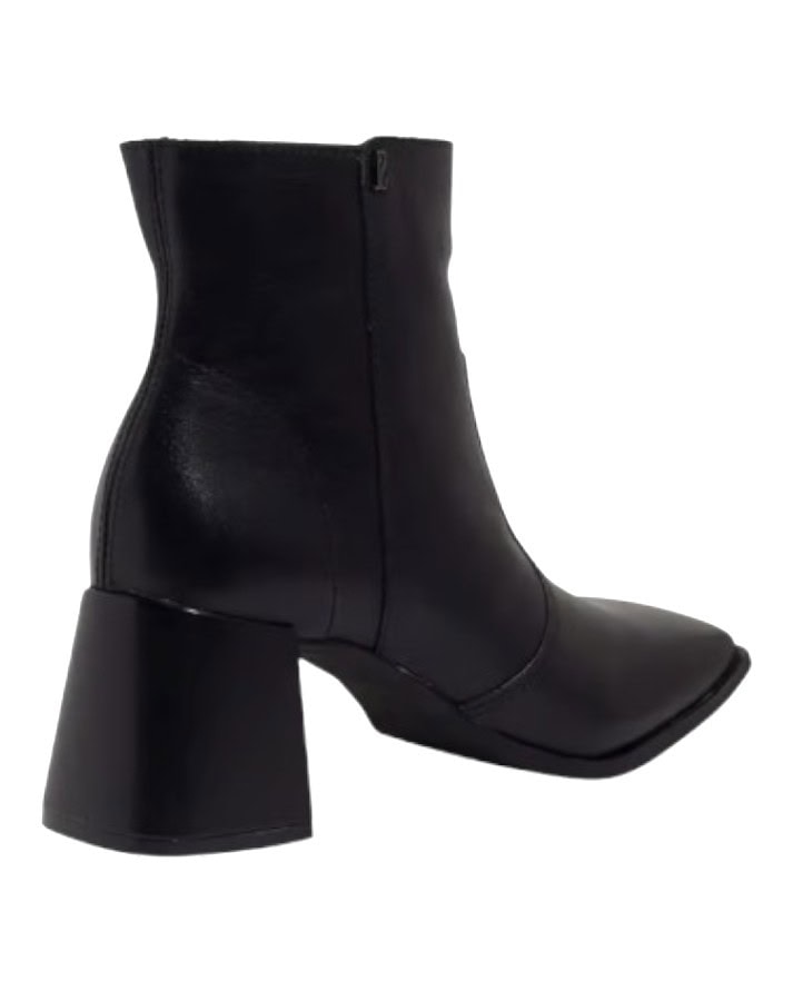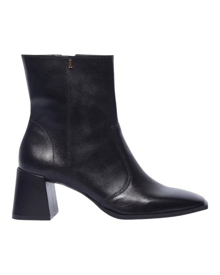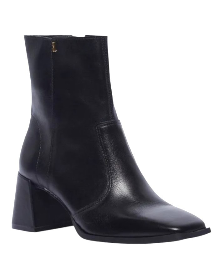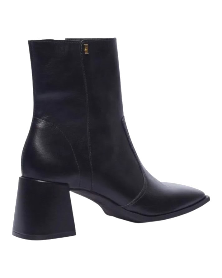 Bota coturno, confeccionada em couro, possui zíper na lateral e salto bloco baixo para proporcionar um visual elegante e confortável.