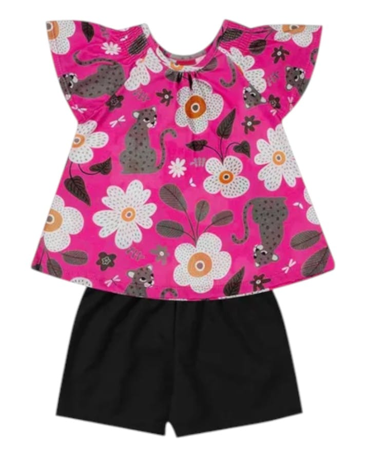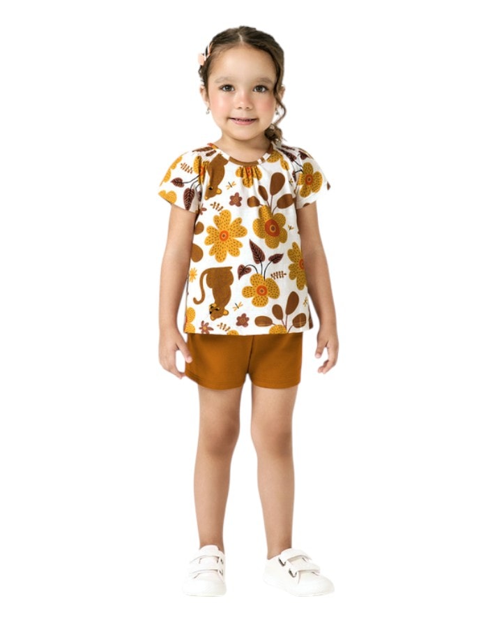 Conjunto Confortável Feminino Infantil Blusa Estampada Com Short 4 ao 8 Kyly Original
