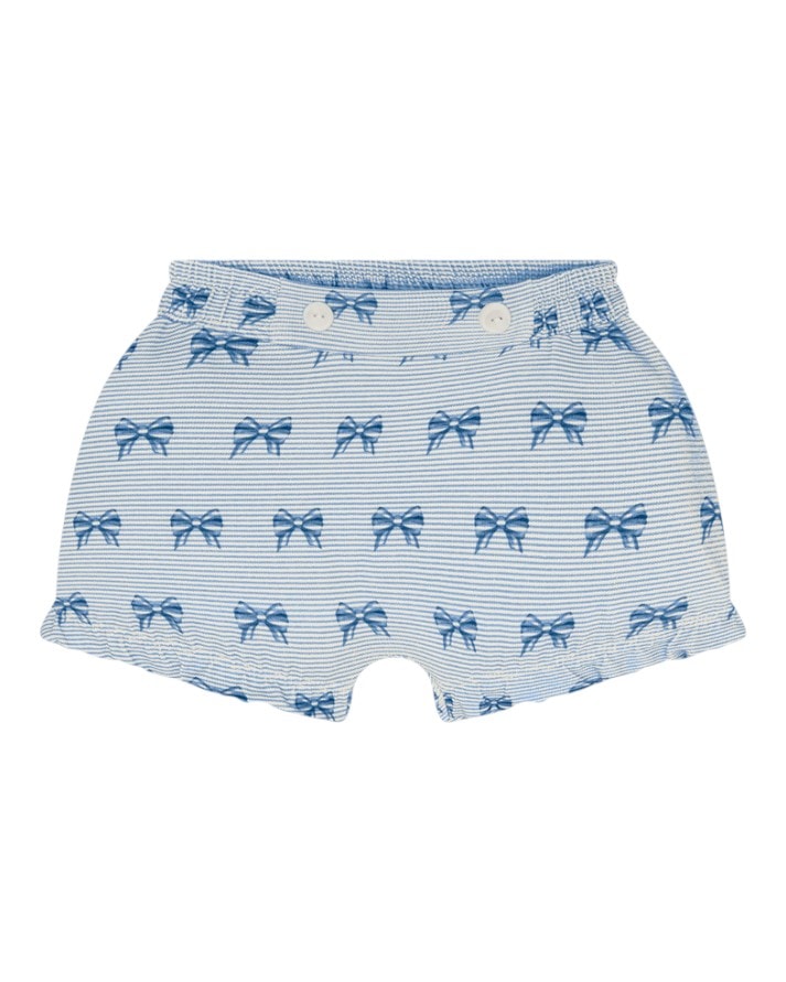 O short complementa o look com estampa de laços por toda a peça, cós com elástico confortável e acabamento delicado nas barras, proporcionando ajuste perfeito sem apertar.