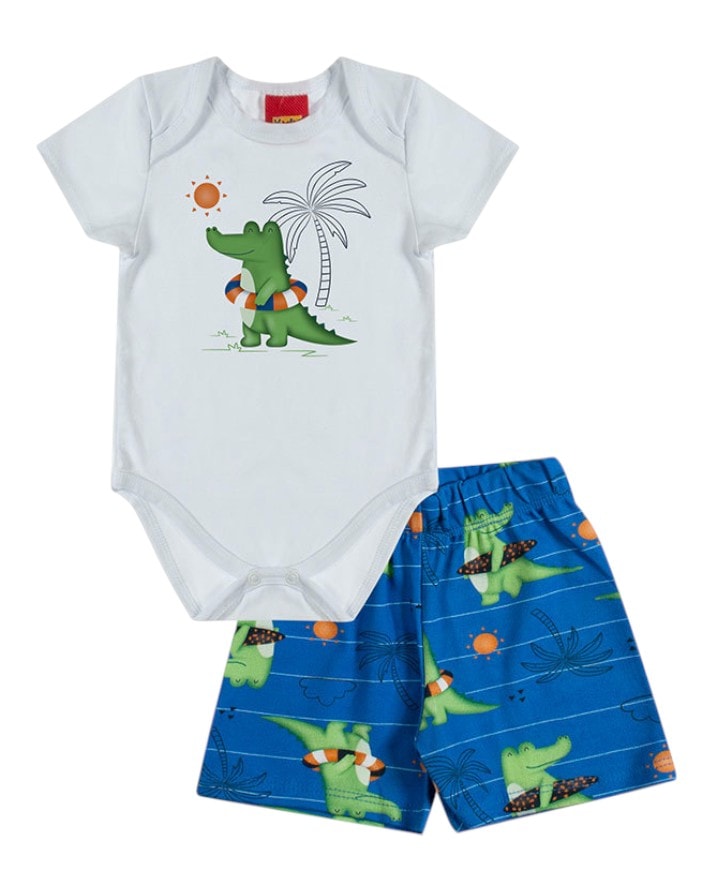 Conjunto Kyly Infantil Masculino composto por body estampado e short confortável. Um conjunto ideal para todas as ocasiões, com visual moderno e descontraído.
