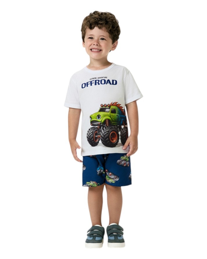 A camiseta é confeccionada em 100% algodão, garantindo toque macio e frescor. Possui estampa exclusiva de Monster Truck Offroad, cheia de cores vibrantes e detalhes que encantam.