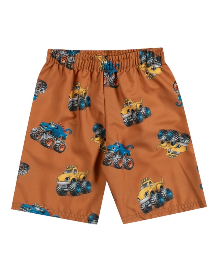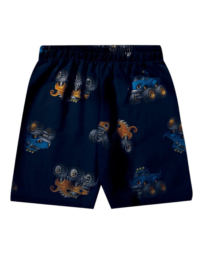 A bermuda, feita em 100% poliéster, tem estampa corrida de carrões, superdivertida e moderna, completando o visual de forma descontraída e estilosa.