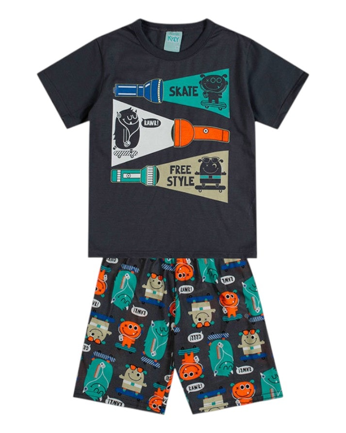 Conjunto Pijama Infantil Masculino Camiseta + Bermuda 1 ao 3 Kyly Original
