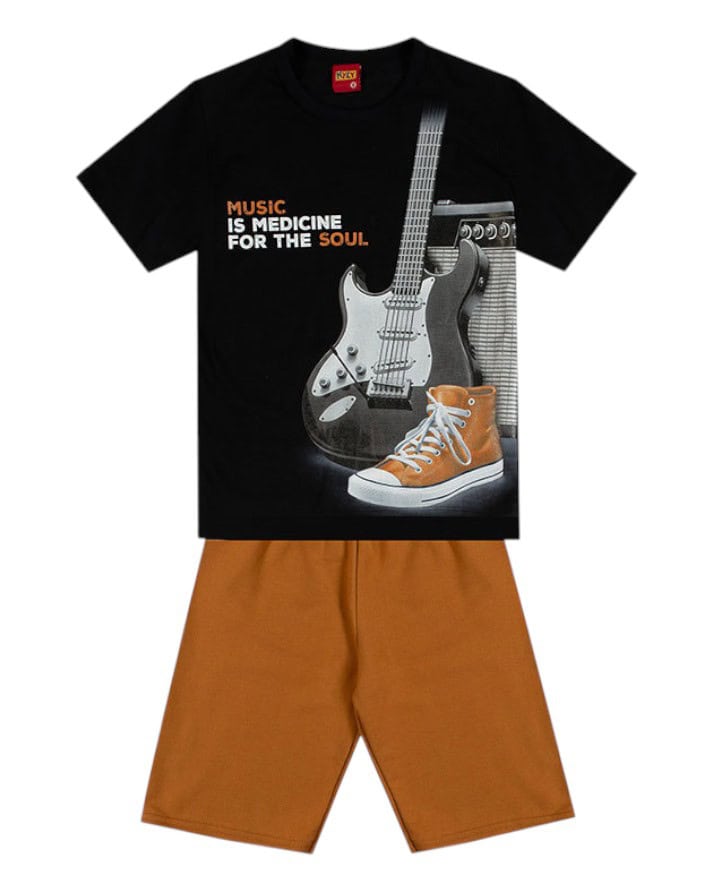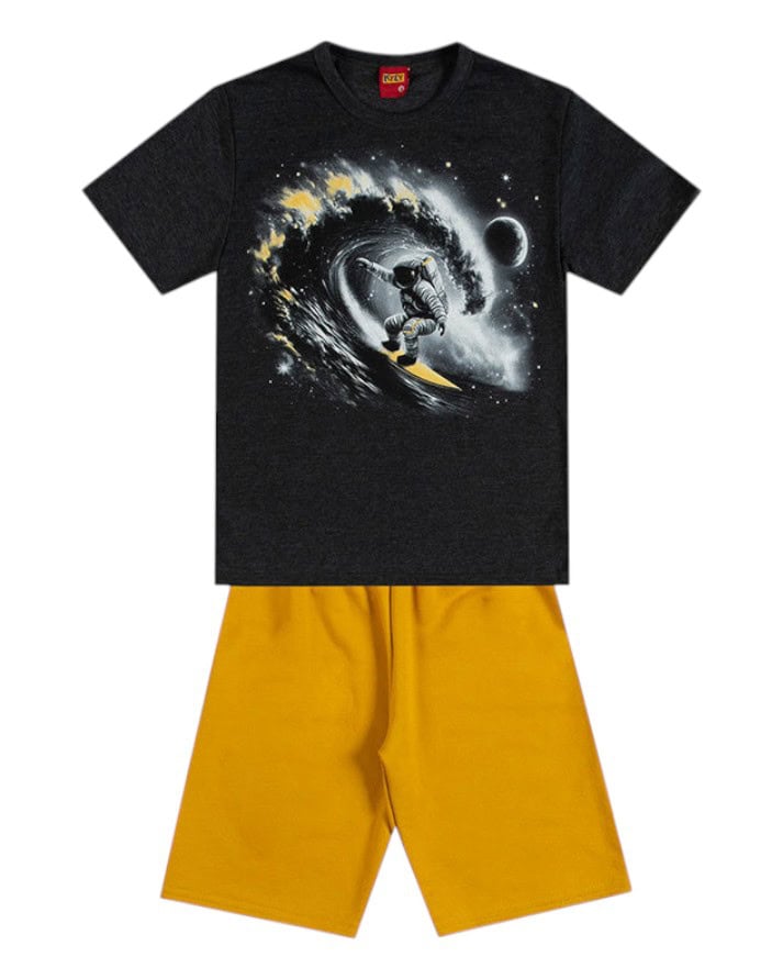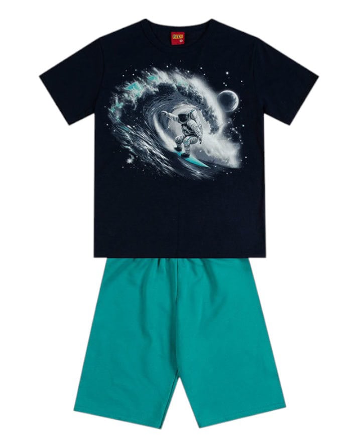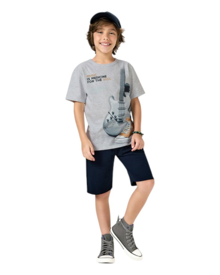 A camiseta possui estampa moderna e cheia de estilo, combinando perfeitamente com a bermuda em cor lisa, que garante praticidade e liberdade nos movimentos.