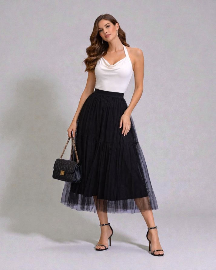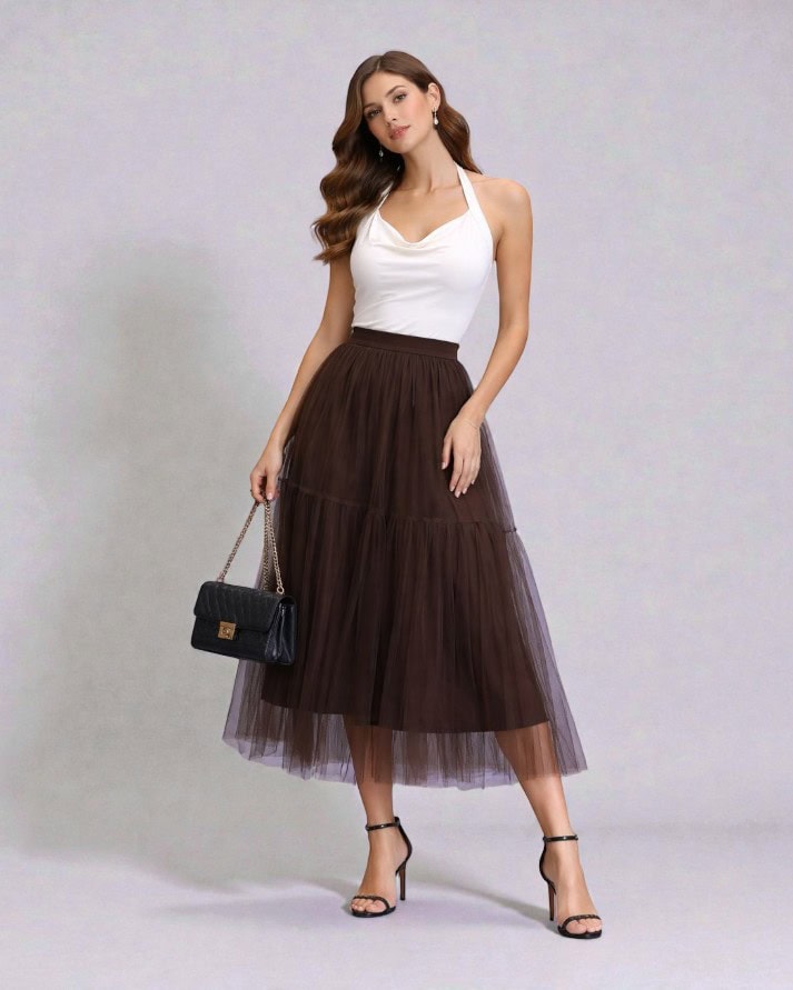 Saia Feminina Midi Tule Lisa Elegante Confortável