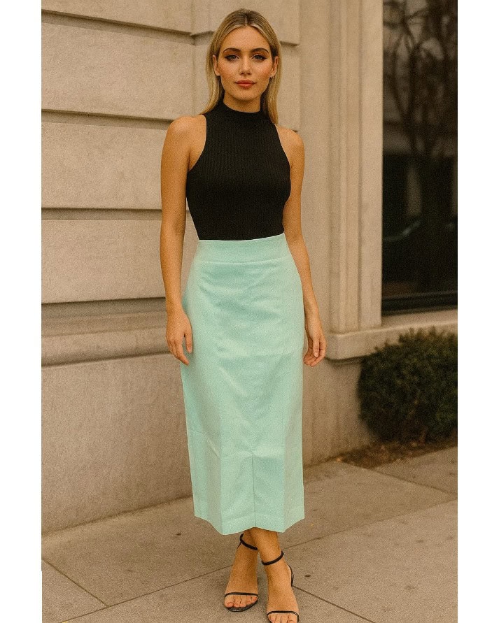 Saia longa em viscolinho, charmosa e versátil. Modelagem elegante com caimento fluido e confortável. Possui cós com elástico na parte de trás, garantindo ajuste perfeito. Conta com bolsos funcionais que unem estilo e praticidade. Detalhe de fenda frontal discreta que valoriza o visual. Peça leve, ideal para compor looks modernos e sofisticados.