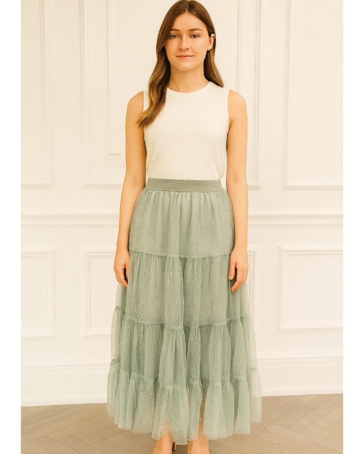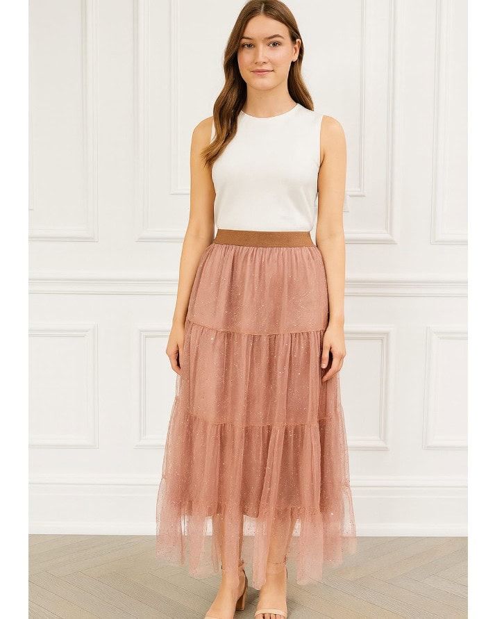 Saia Midi Feminina Tule Com Brilho Elegante E Delicada Confortável