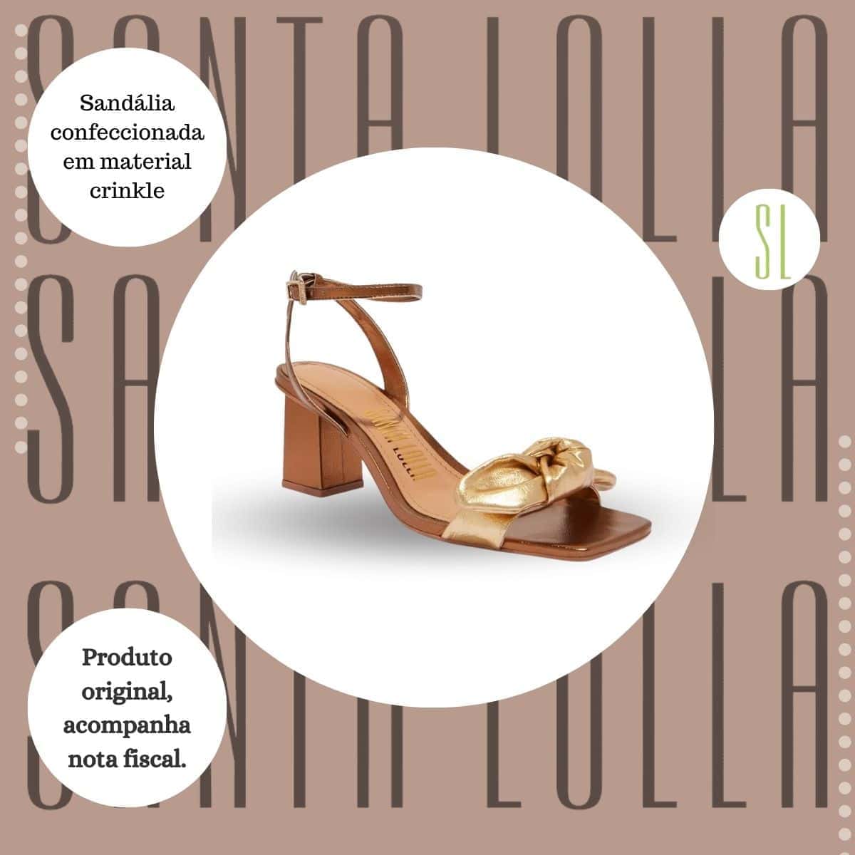 Sandália Santa Lolla Salto Grosso Laço Metalizado Sofisticado Original