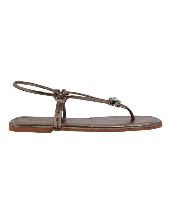 Sandália Santa Lolla Rasteira Com Pedra Brilhosa Metalizada Original