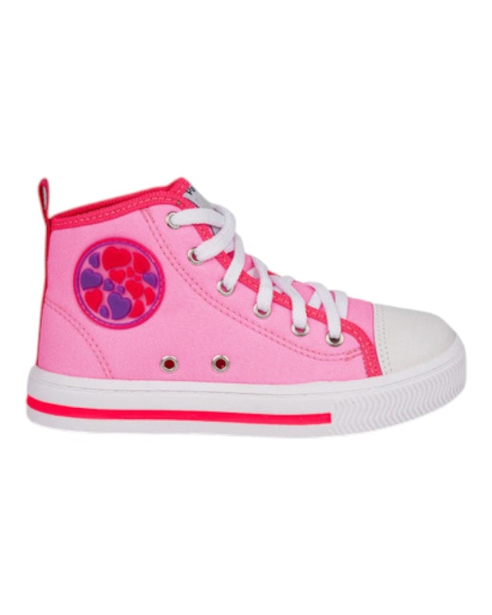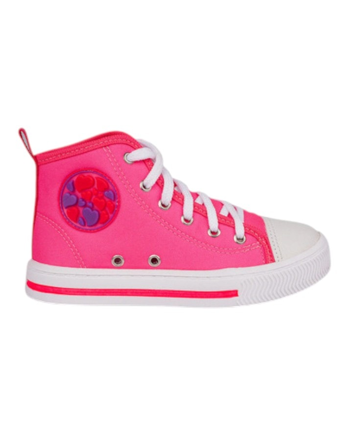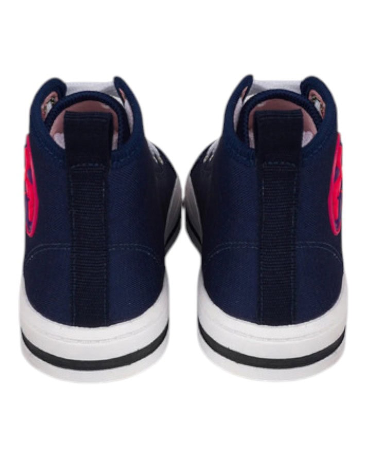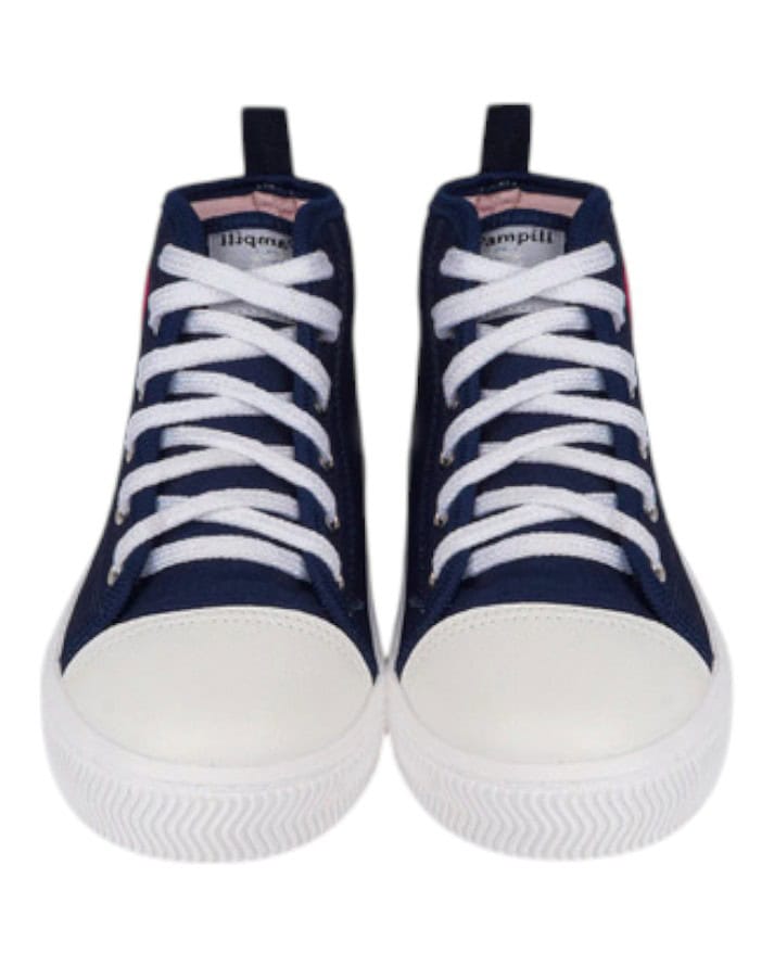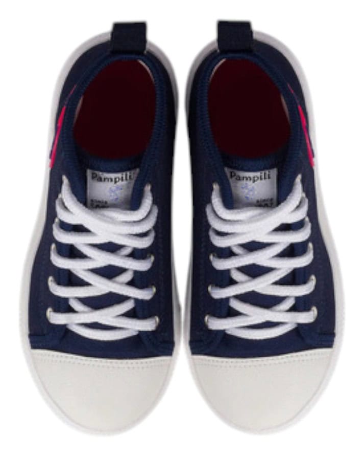 Tênis infantil feminino Pampili modelo botinha casual, original e cheio de estilo. Confeccionado em material resistente e confortável, garante bem-estar durante todo o uso. Seu design moderno em azul marinho, com detalhe de corações em rosa e roxo, traz um toque delicado e divertido ao visual das meninas. O fechamento em cadarço proporciona ajuste seguro e personalizado, enquanto o solado emborrachado oferece maior aderência e segurança ao caminhar. Ideal para compor looks casuais e despojados, perfeito para passeios, escola e momentos de lazer.