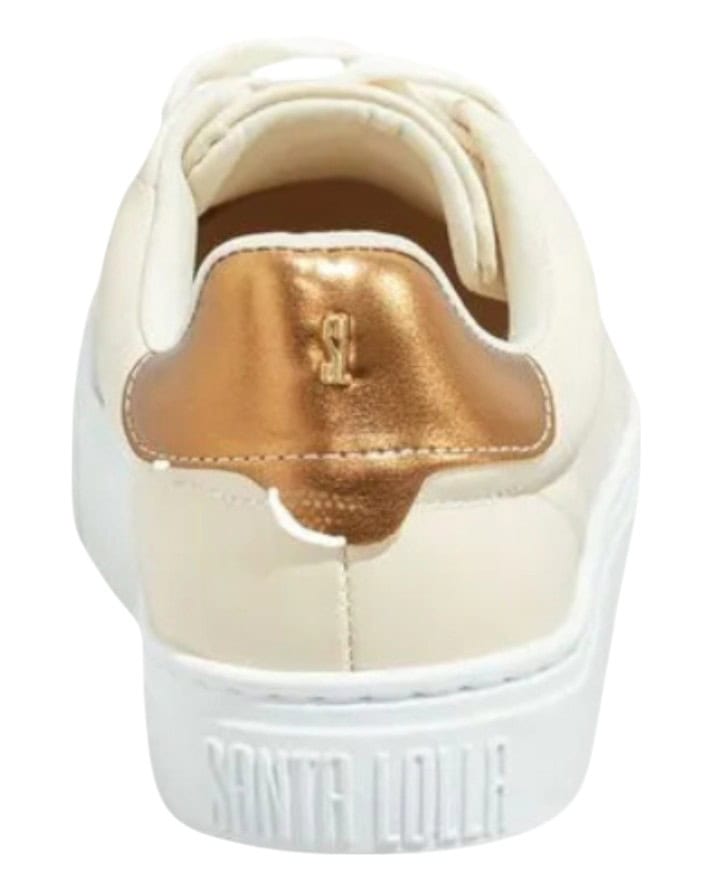 O tênis off white da Santa Lolla é a escolha perfeita para quem busca estilo e conforto no dia a dia. Com design moderno e versátil, o modelo traz biqueira em camurça cinza claro e detalhe metalizado dourado no calcanhar, que adiciona um toque sofisticado ao visual. Ideal para compor looks casuais, urbanos ou até produções fashionistas. A sola emborrachada garante estabilidade e conforto, enquanto o acabamento interno macio proporciona bem-estar em cada passo.