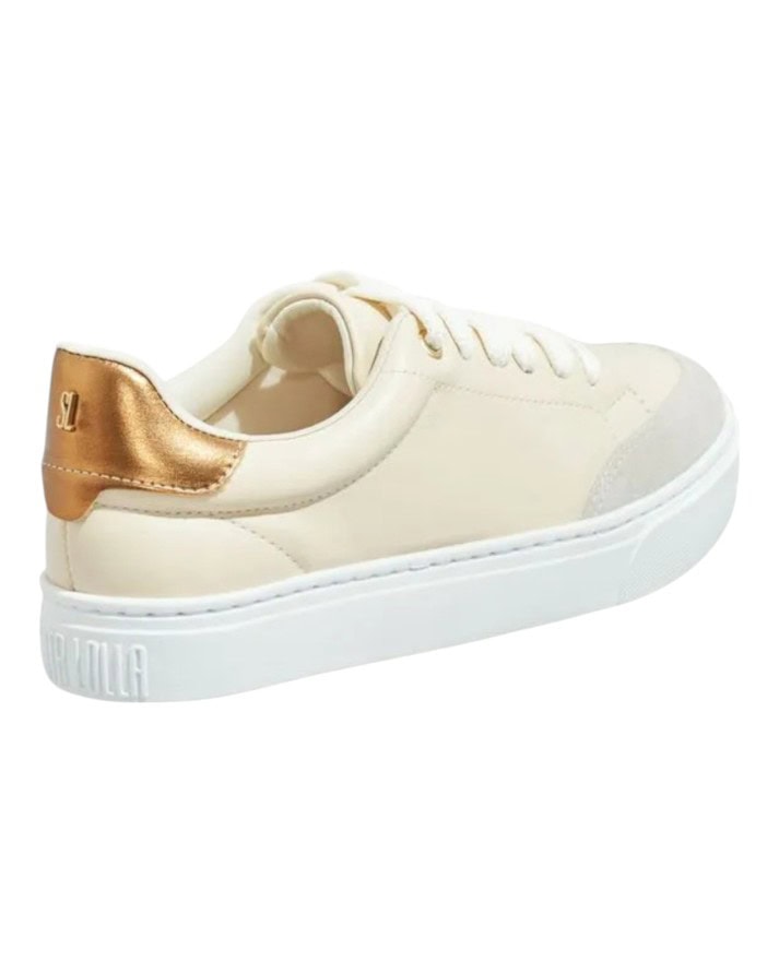 Este tênis é ideal para complementar seus looks casuais com um toque de sofisticação. A combinação de cores neutras com detalhe dourado traz elegância, enquanto o solado emborrachado e a biqueira em camurça proporcionam um visual urbano. Use-o em passeios na cidade ou encontros com amigos, sempre com muito estilo.