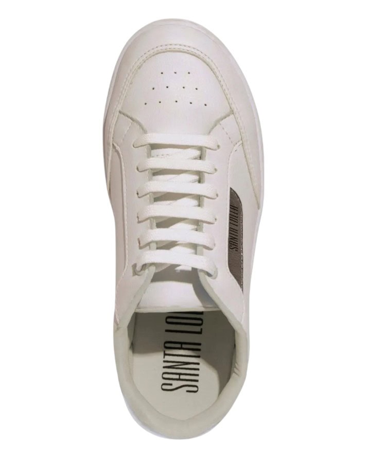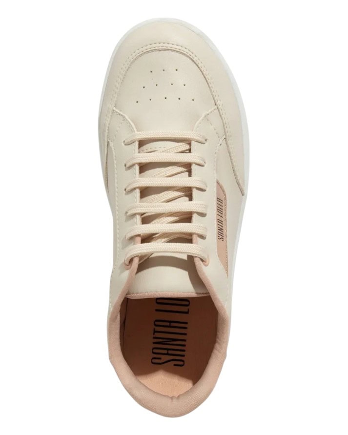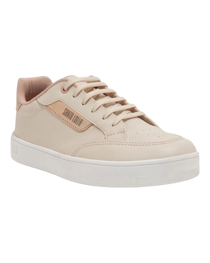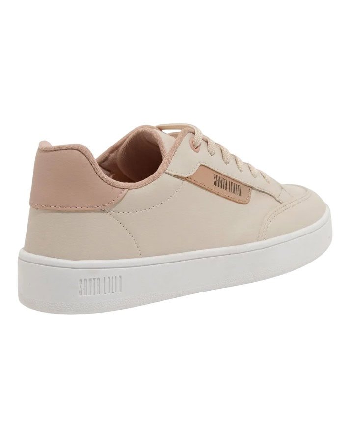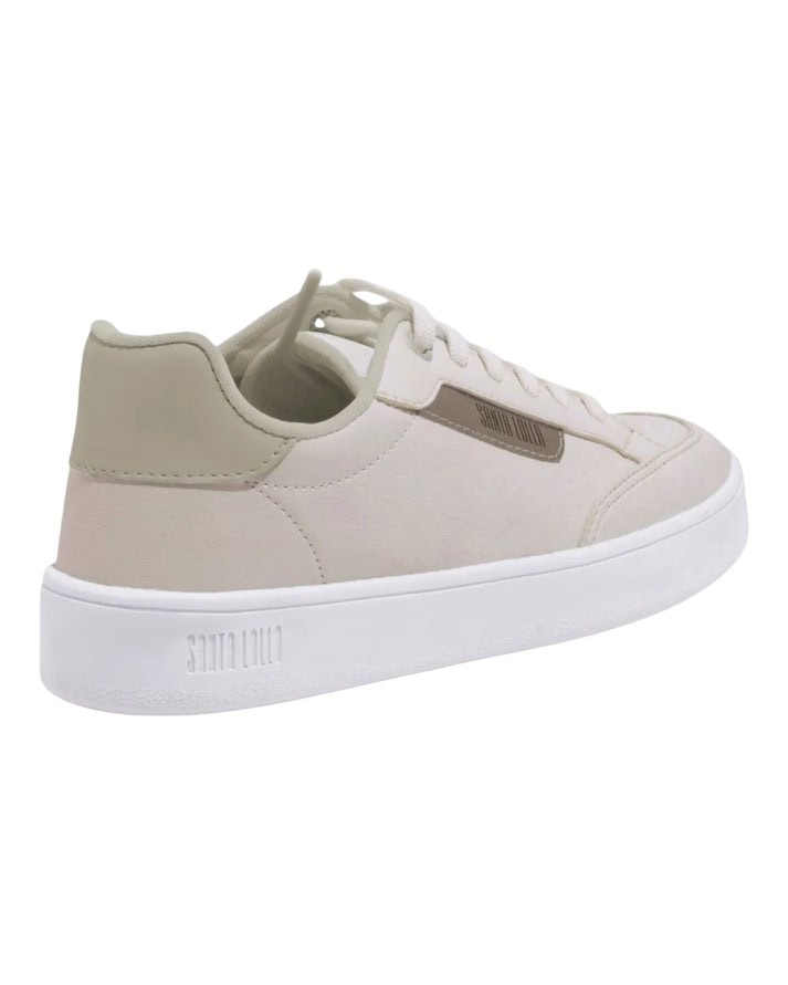 Os tênis da Santa Lolla são os mais procurados, o novo modelo em couro sintético Lux, o cabedal é confeccionado em material sintético, com bico arredondado, solado baixo de 3 cm, inscrição do logotipo na parte lateral e detalhe nas duas laterais em cores distintas.