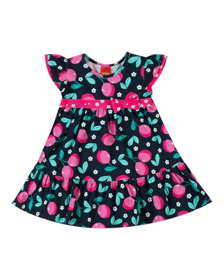 Vestido infantil confeccionado em malha macia e confortável, com caimento leve que acompanha os movimentos da criança.