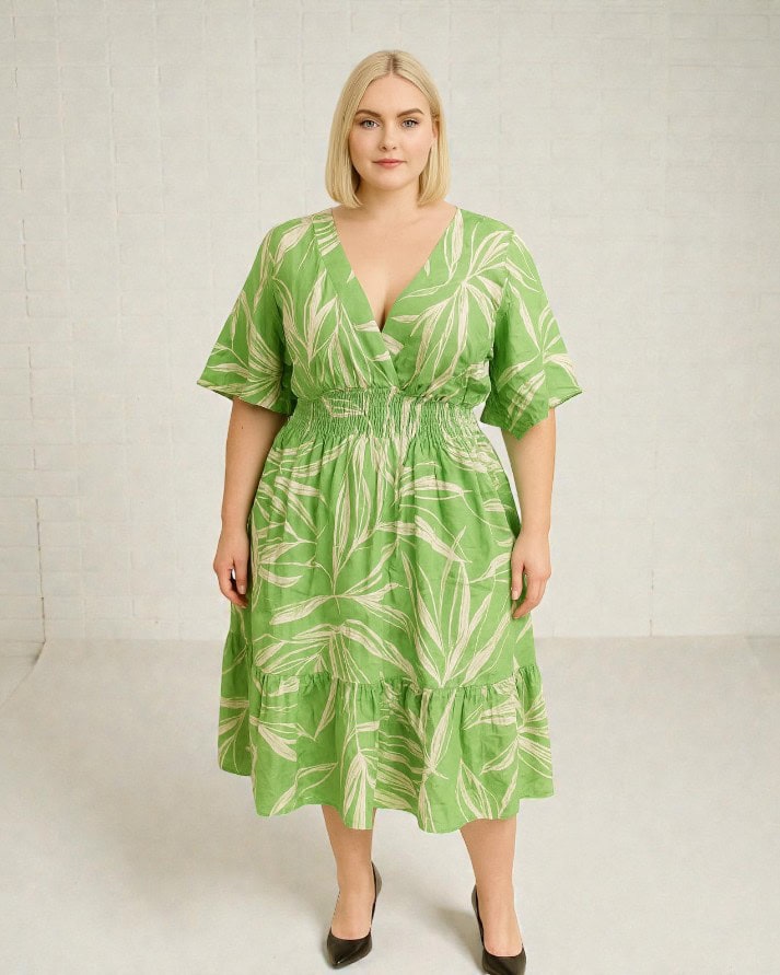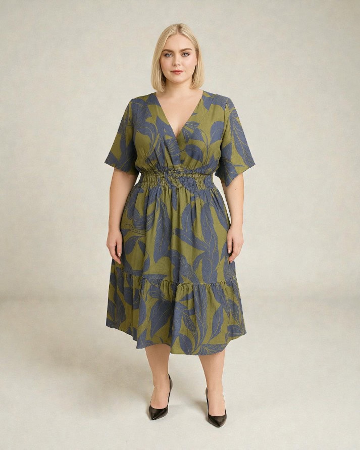 Vestido midi com decote transpassado que valoriza o colo e cria um visual elegante. Possui mangas amplas, cintura com lastex para ajuste perfeito e definição da silhueta, além de saia fluida com recorte e leve babado na barra, garantindo movimento e conforto. Uma peça versátil, ideal para compor looks casuais ou mais arrumados com facilidade.